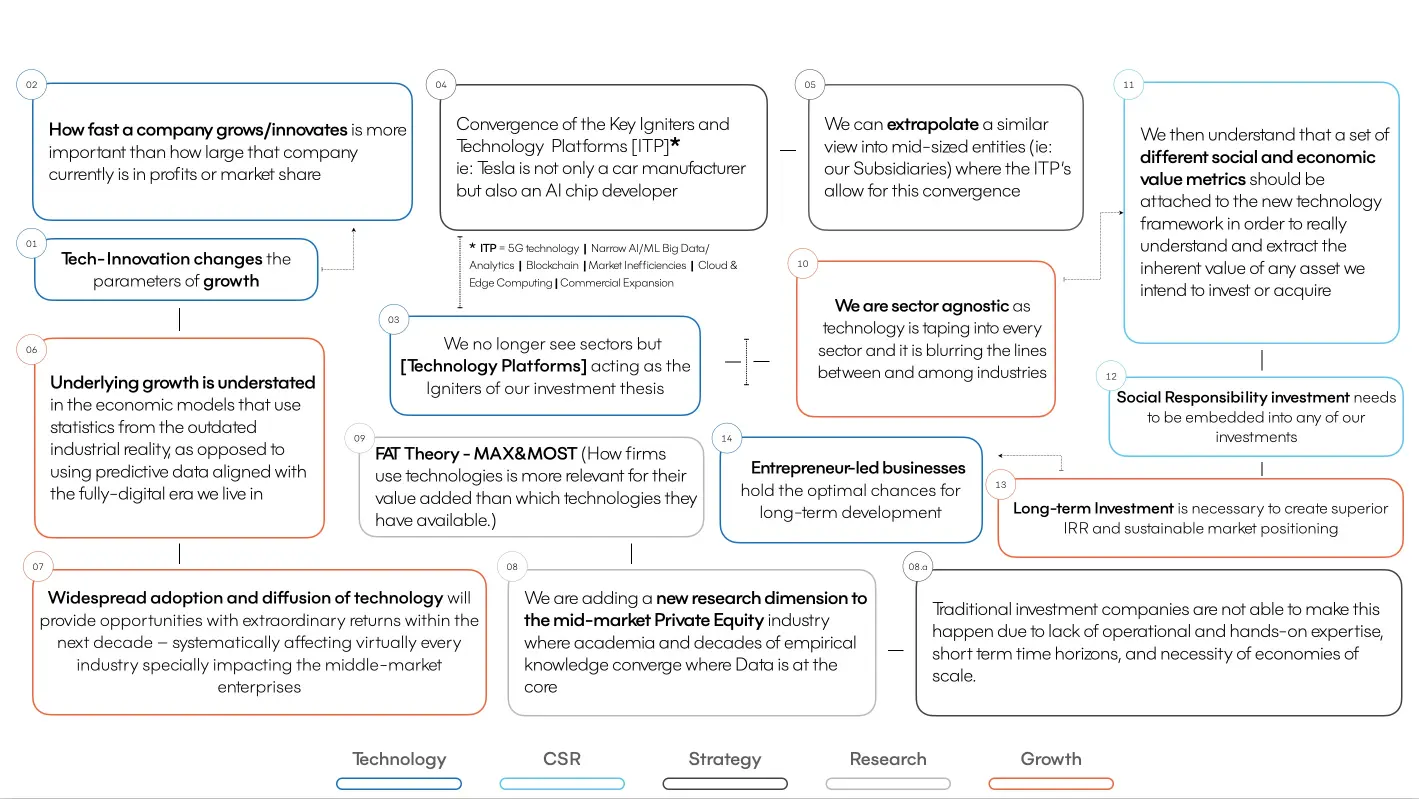- (b) that the discovering of significant market inefficiencies, where technology brings the solution, is key to create long-term enterprise value.